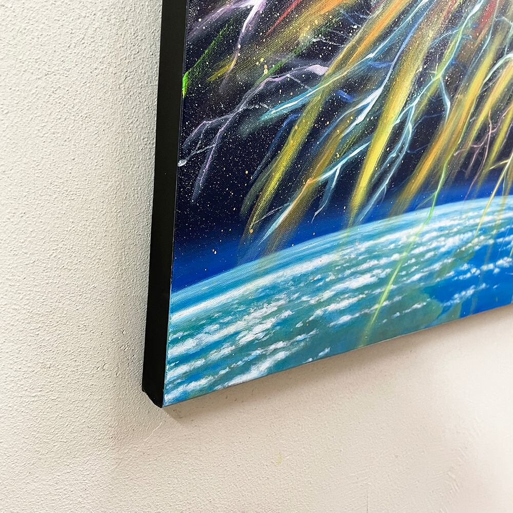 原画の迫力をお届けしたいので額無しで飾れるように裏面に紐を通しております。