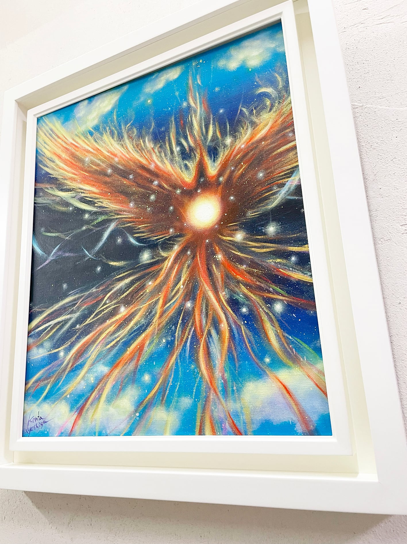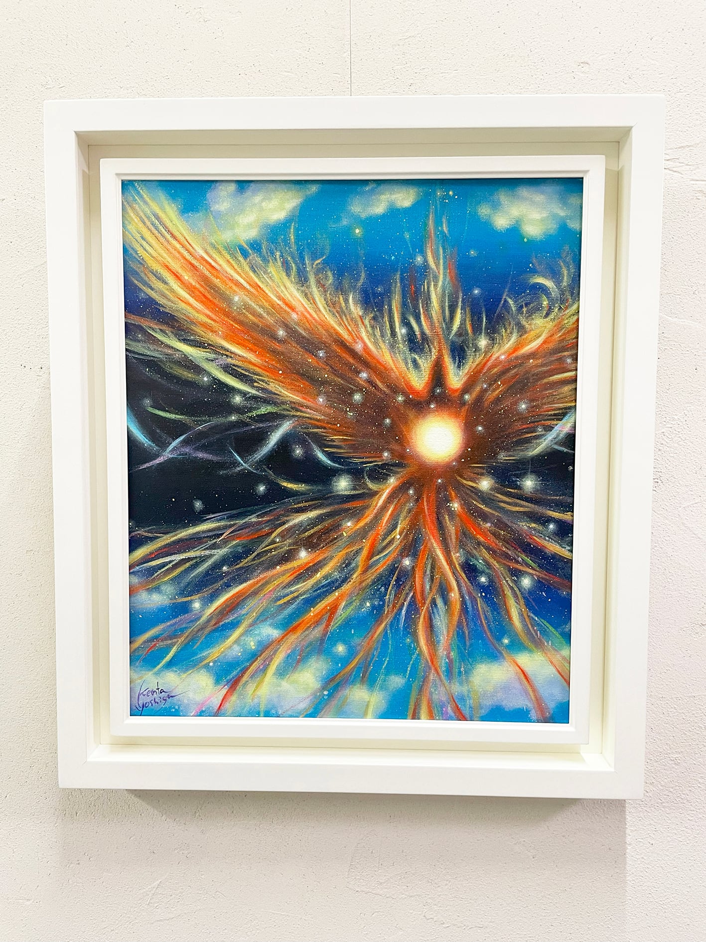 原画:ヒカリ アツマリ ノボル(サイズ:F8号(額縁含む縦450mm×横560mm×奥行45mm))