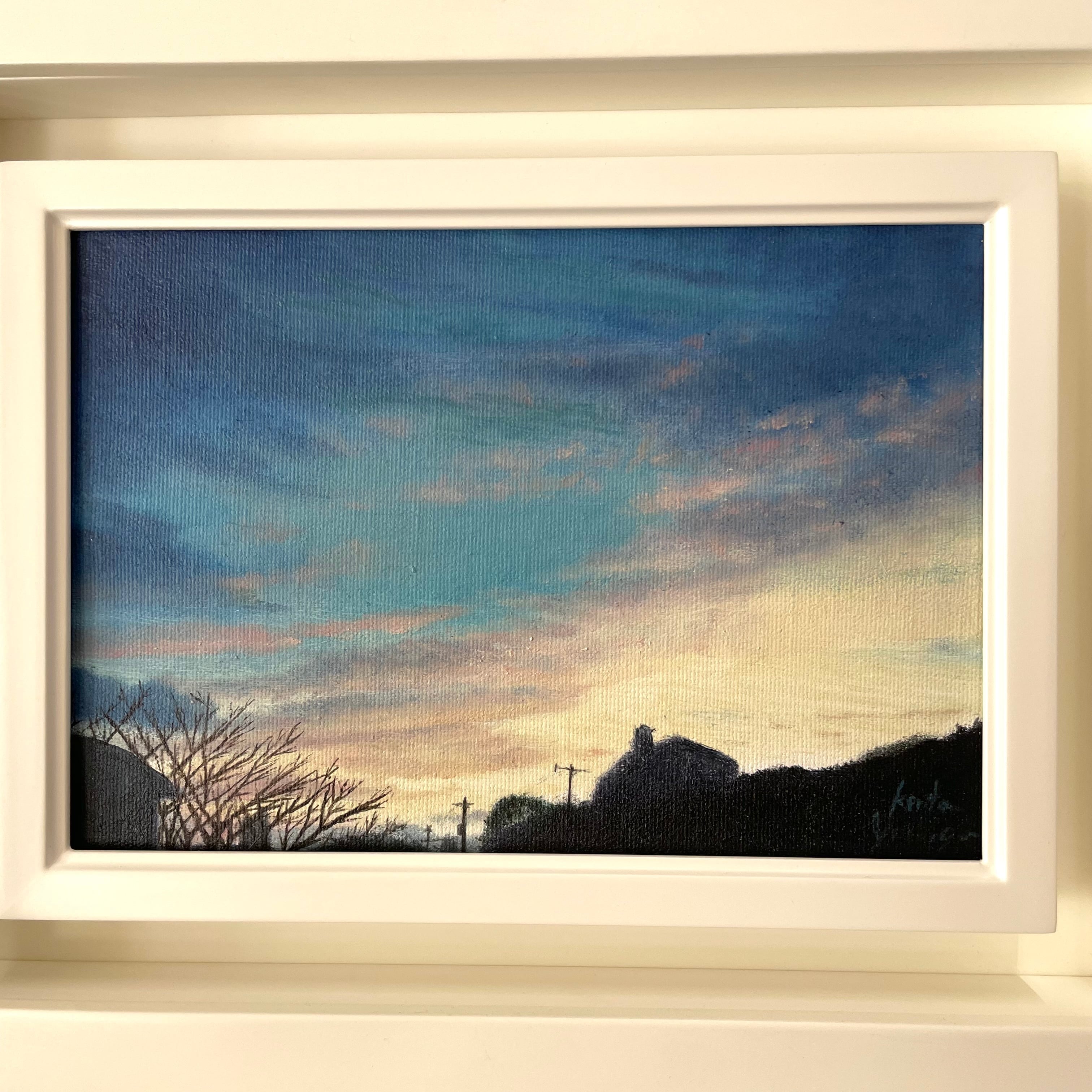 静かな早朝の風景に美しさを感じ描いた一枚。
