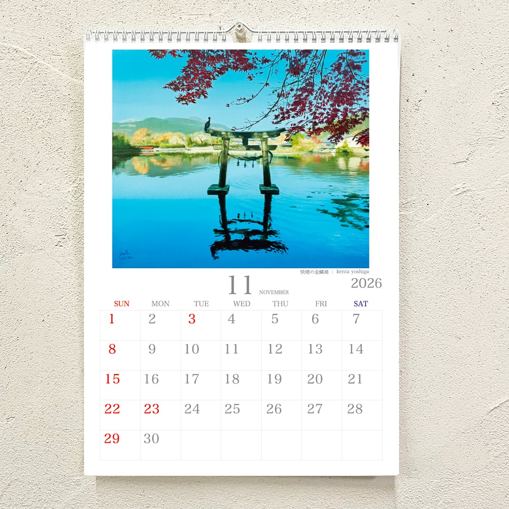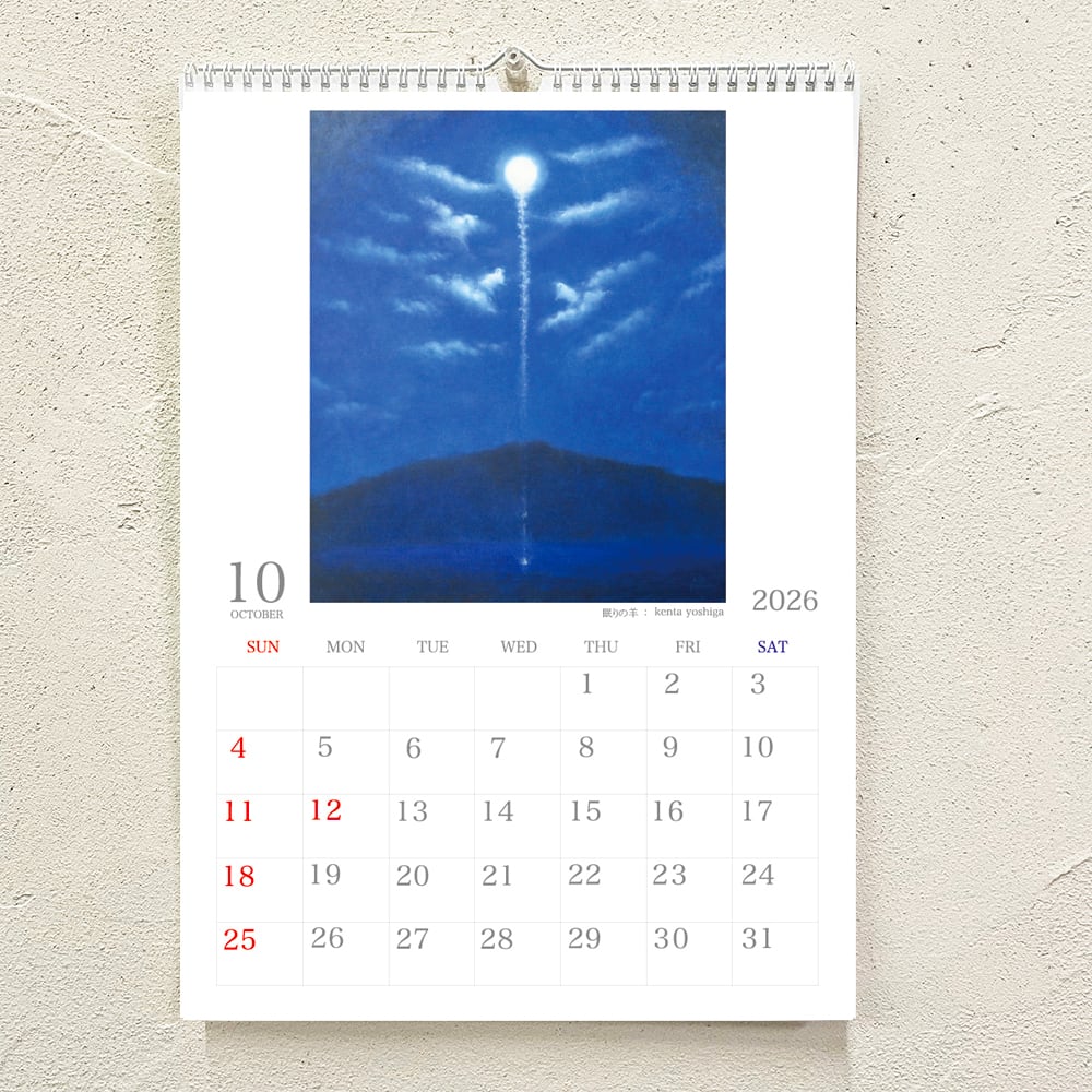 画家の芳賀健太の最新の絵画作品が中心で構成された2026年版のカレンダーです。